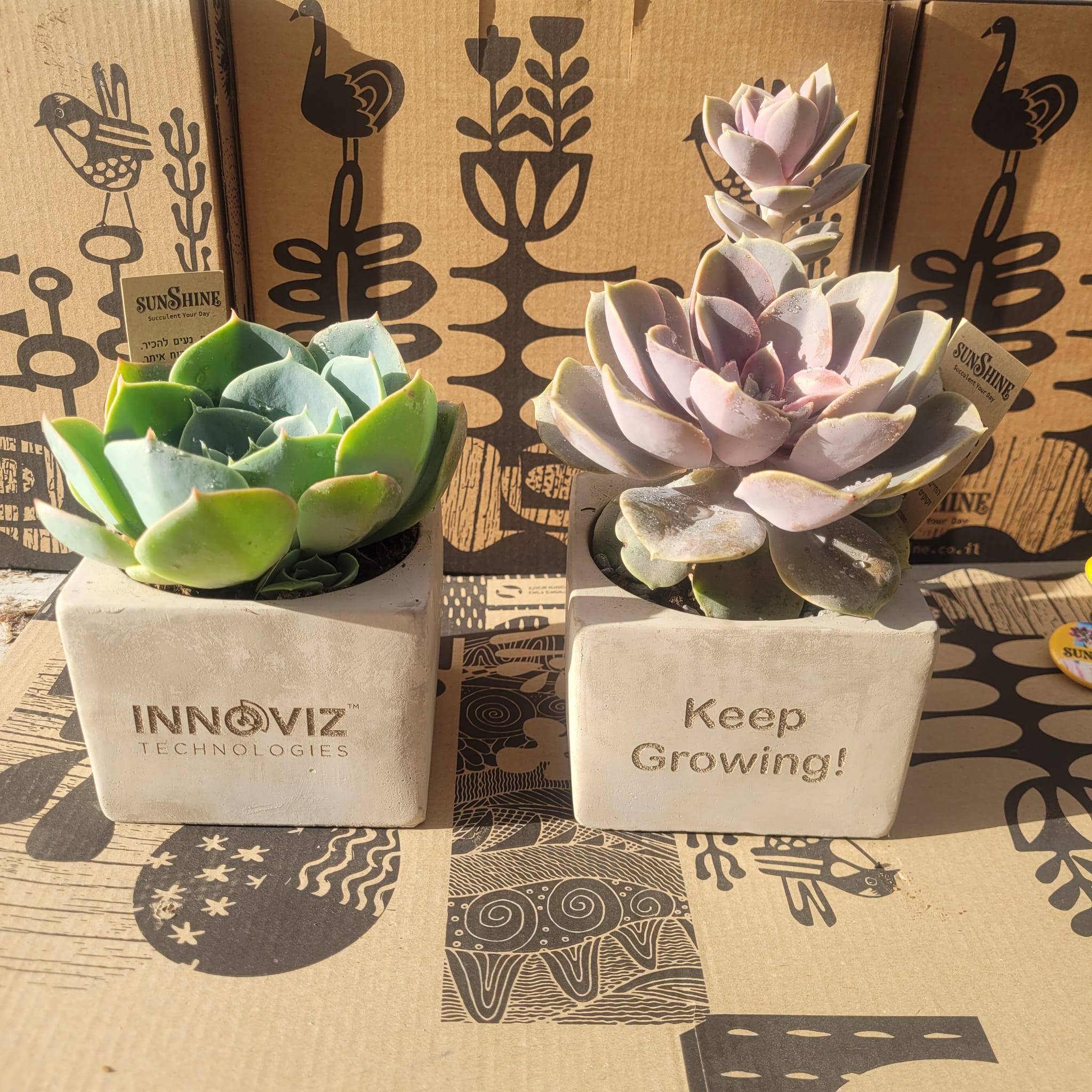 כל עציץ נחרט לפי העיצוב המתבקש ועל גבי פאה אחת