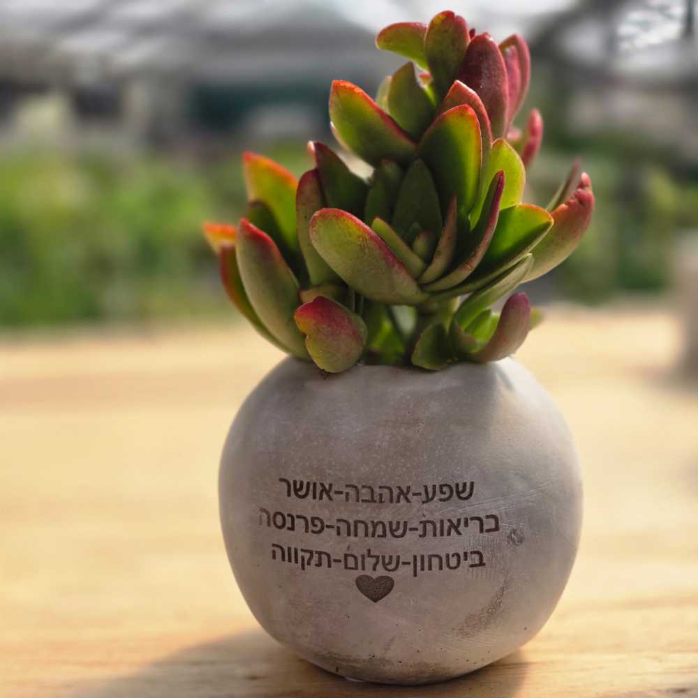 עשוי בטון מוברש ממותג גודל היקף 32 ס"מ / ס"מ 7.5 ס"מ (לא כולל גובה צמח). +מנשא אישי מעוצב .המחיר מתייחס ליח׳ אחת בגודל הנבחר וכולל סוקולנט