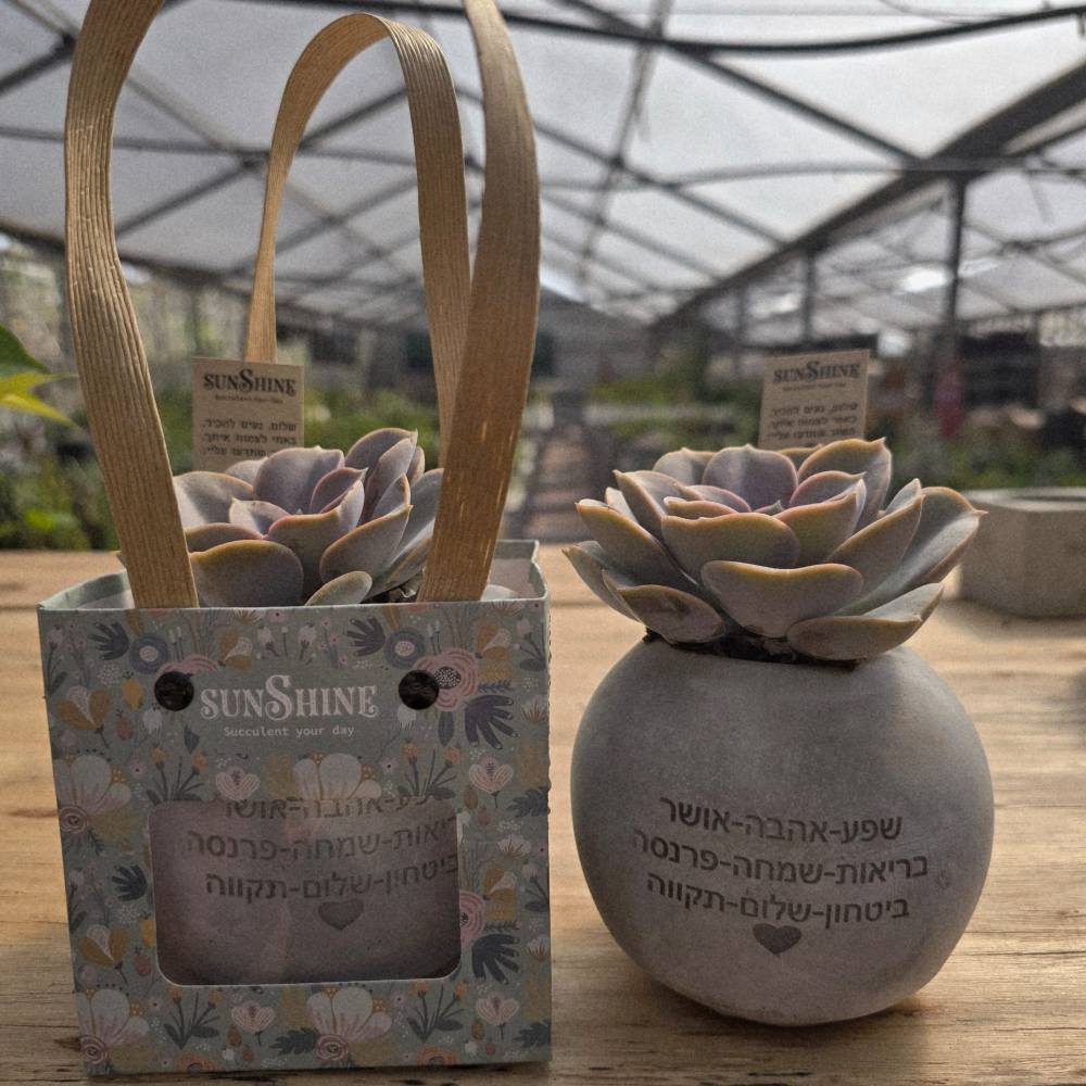 כולל סוקולנטים מסוגים שונים לפי גודל הכלי.