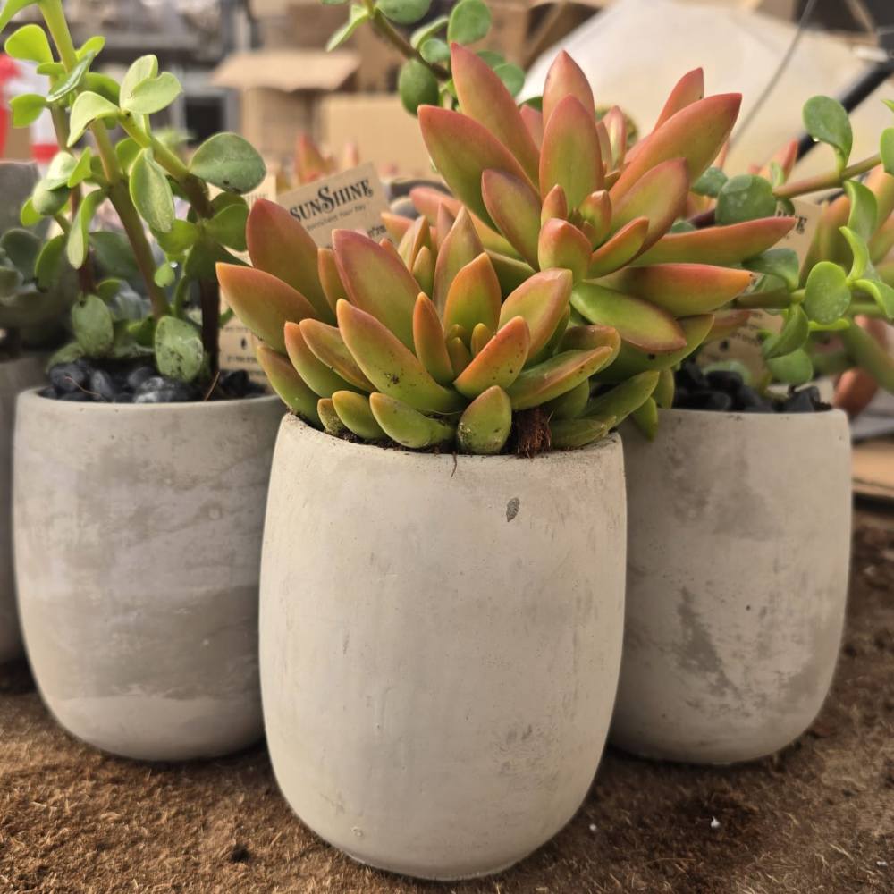 כלי עגול בטון  קוטר 9ס"מ גובה 10 שתול בסוקולנט וצבעוני